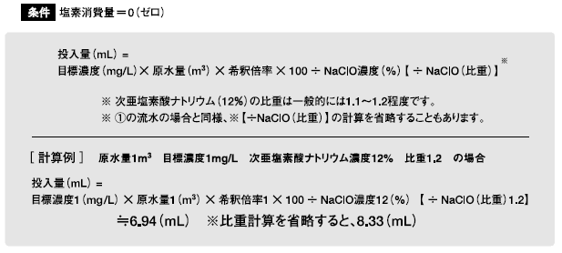 (注入不足では殺菌力が不十分で危険です) - 塩素消費量ゼロを前提としていますが、現実には多少とも消費されます。