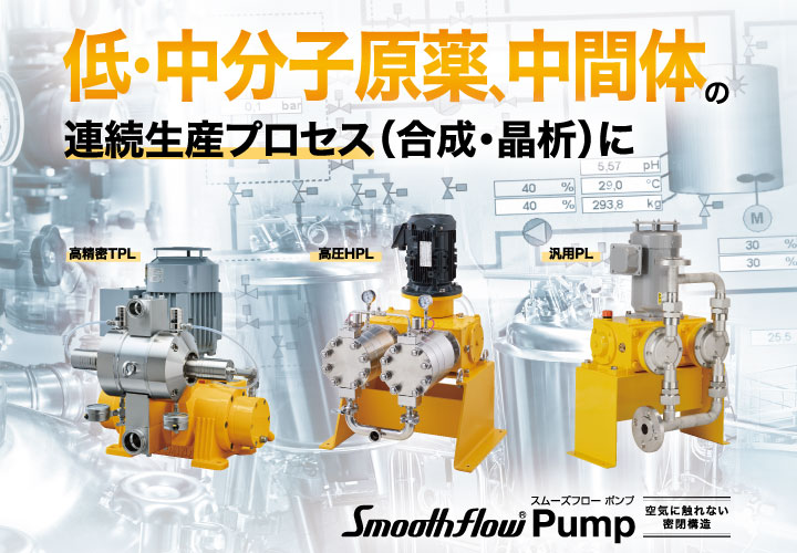 注目テーマ|スムーズフローポンプ 低・中分子原薬、中間体の連続生産プロセス(合成・晶析)