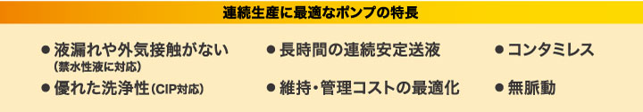 さらに、連続生産プロセスに欠かせないポンプの特長はそれだけではありません。常に任意の量を継続的に供給できるポンプが必要となります。