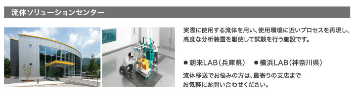 ポンプの貸し出しだけでなく、実際の使用環境に近いプロセスを再現し、高度な分析装置を駆使して事前に試験を行うことができる施設「流体ソリューションセンター」もご用意。試験結果を確認し、確信を持ってから導入いただけます。