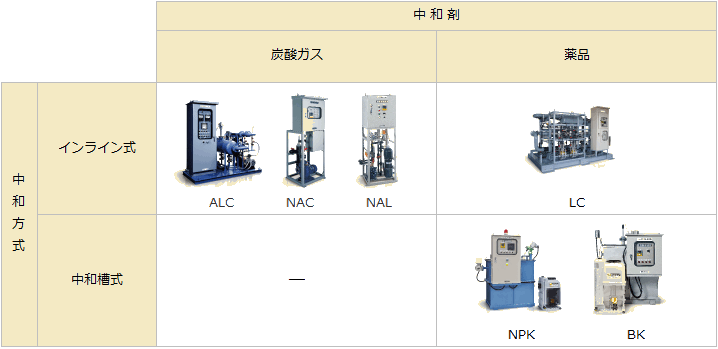 タクミナのpH中和処理装置ラインアップ