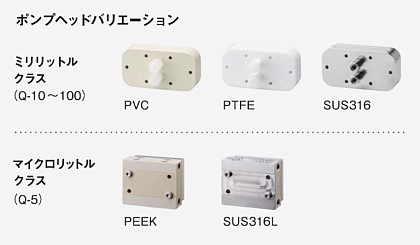 液に応じて異なる材質のポンプヘッドを装着して使い分けることもできます。